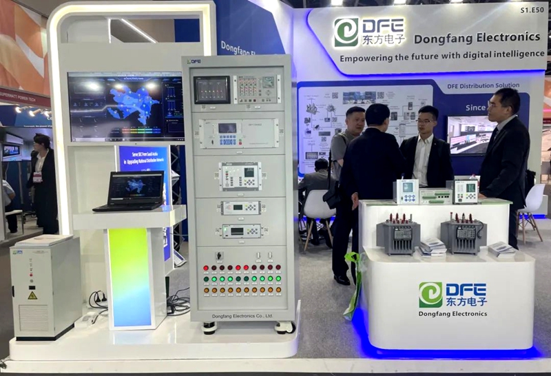 东方电子本次参展主题是“源网荷储协同增效,数智赋能电力未来”,向用户展示适用于中东地区的配用电解决方案,集成RTU、保护、变压器,电表、储能液冷一体机等产品,SCADA系统等。本次展示的非晶合金有载调压变压器和液冷光储一体机受到众多客户关注。